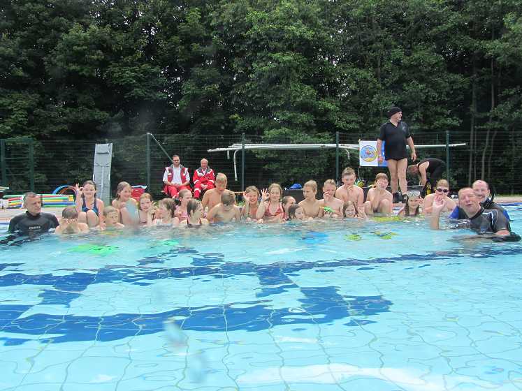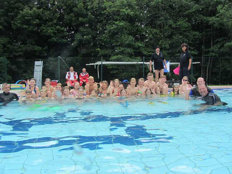 Da die Teilnehmerzahl so groß war (ca.80 Schüler), musste die Veranstaltung in zwei Etappen durchgeführt werden. Das Erlebnis unter Wasser atmen zu können und sich schwerelos zu bewegen war ein Abenteuer für die Grundschüler.